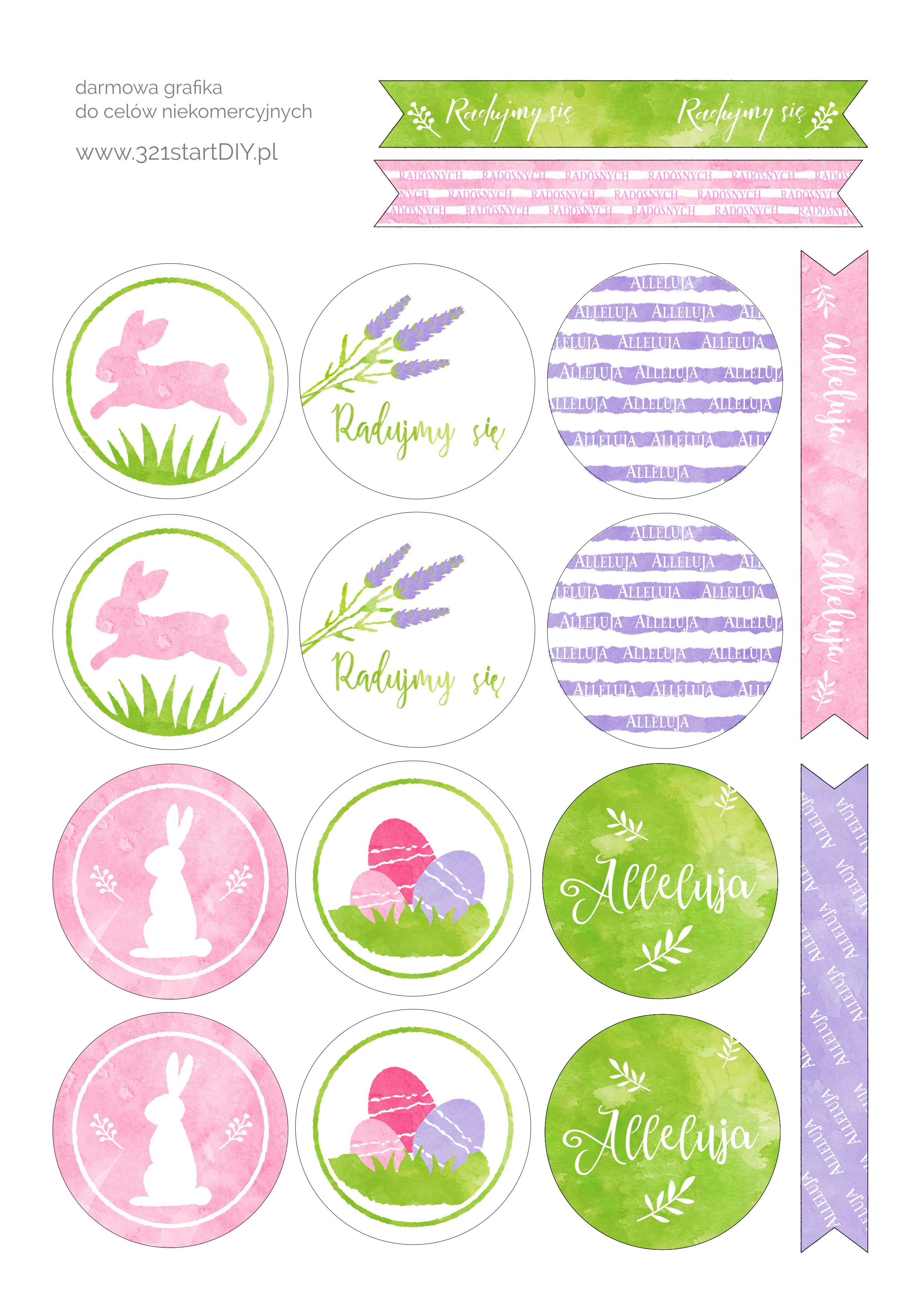 Jeszcze jeden dekoracyjny element, który zagości na moich odświętnych babeczkach – etykiety. Przygotowałam takie, które są spójne stylistycznie z plakatami wielkanocnymi i wielkanocną girlandą.