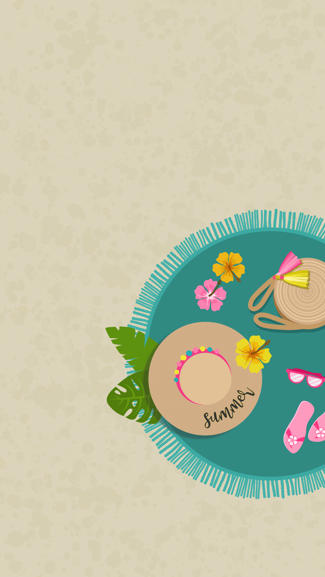 Wśród tapet znajdziecie modny w tym roku kapelusz z napisem, okrągły koc plażowy czy nawet niezwykle popularną w tym roku okrągłą torbę 🙂 Są lody i drink w kokosie. Jest też super fajny aparat w liście monstery, z najmodniejszą przywieszką sezonu czyli chwostem.